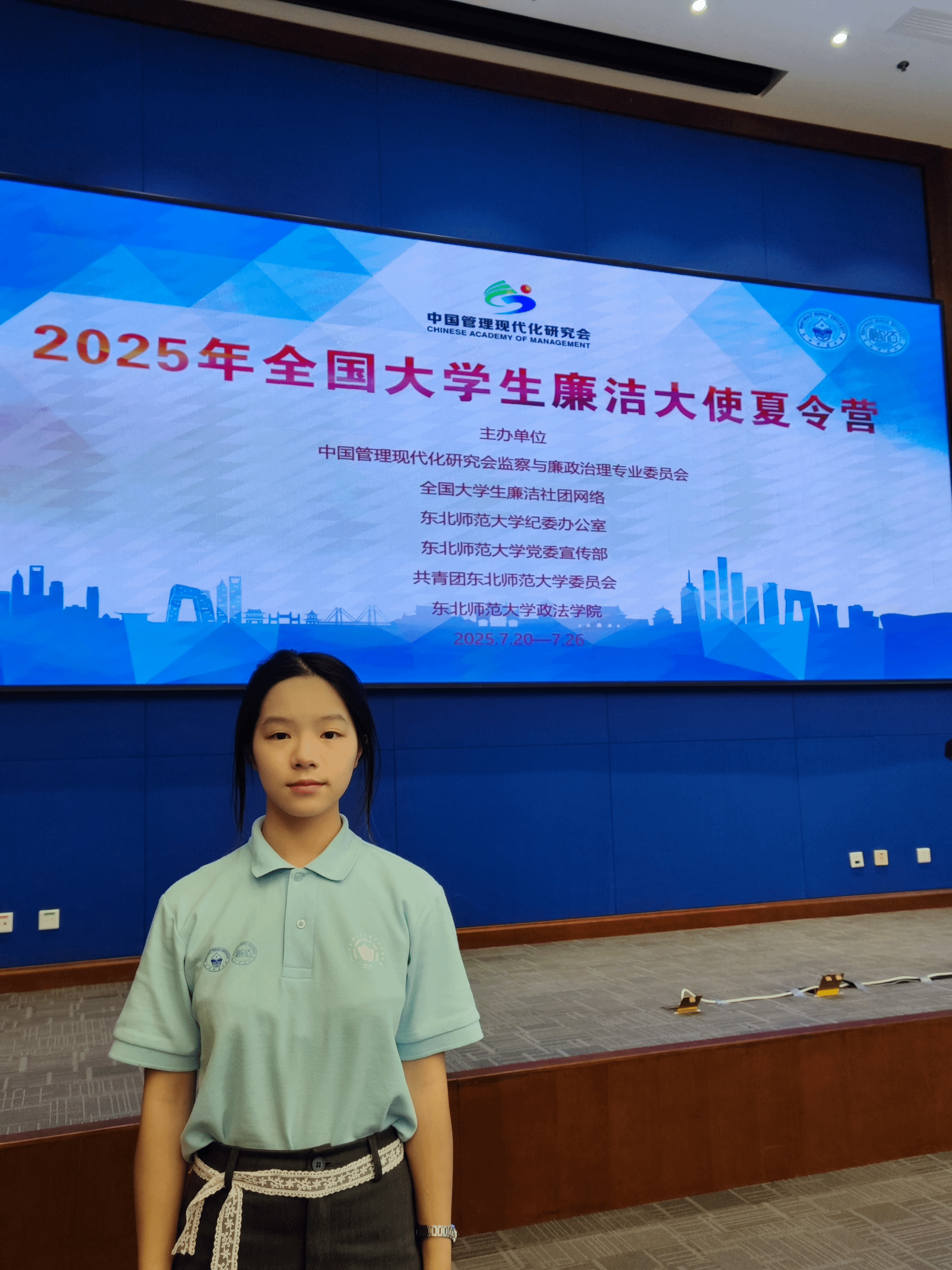 近日,由中國管理現(xiàn)代化研究會監(jiān)察與廉政治理專業(yè)委員會(簡稱廉政學會)、全國大學生廉潔社團網(wǎng)絡、東北師范大學聯(lián)合主辦的“2025年全國大學生廉潔大使夏令營”在東北師范大學舉辦。南充校區(qū)2025年“全國大學生廉潔大使”劉瑜和青年傳清廉學習社骨干方思語、蒲奕穎共三名同學受邀參加本次夏令營活動。