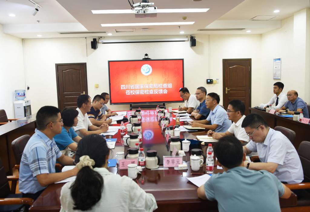 9月6日下午,四川省國家保密局檢查組在對學校保密工作展開進駐式檢查的基礎上,組織召開了保密檢查反饋會。四川省國家保密局檢查組組長、省國家保密局檢測中心主任馮新勇主持反饋會并講話,學校黨委副書記、校長張烈輝,黨委常委、副校長祝效華,黨委常委、組織部部長、宣傳部部長易聯樹出席會議。