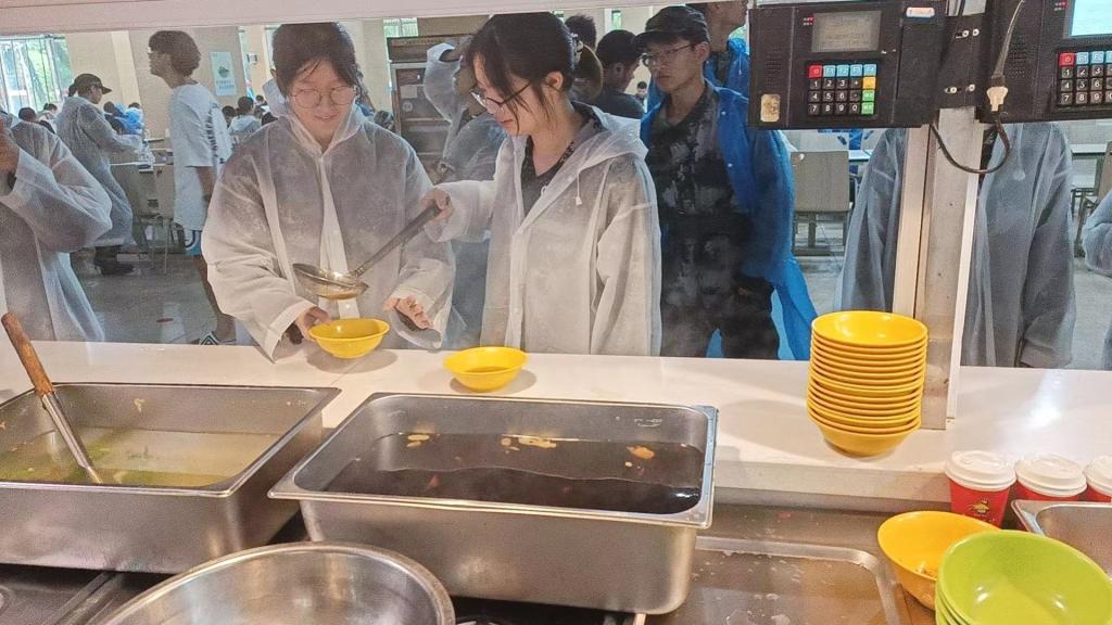 在南充校區,當天降雨不斷,師生們在雨中完成了一次難忘的開學典禮。為防止新生受涼感冒,典禮結束后,學校為學生熬制了驅寒暖胃的姜湯,設置姜湯自取點,供學生免費領取,獲得師生點贊。