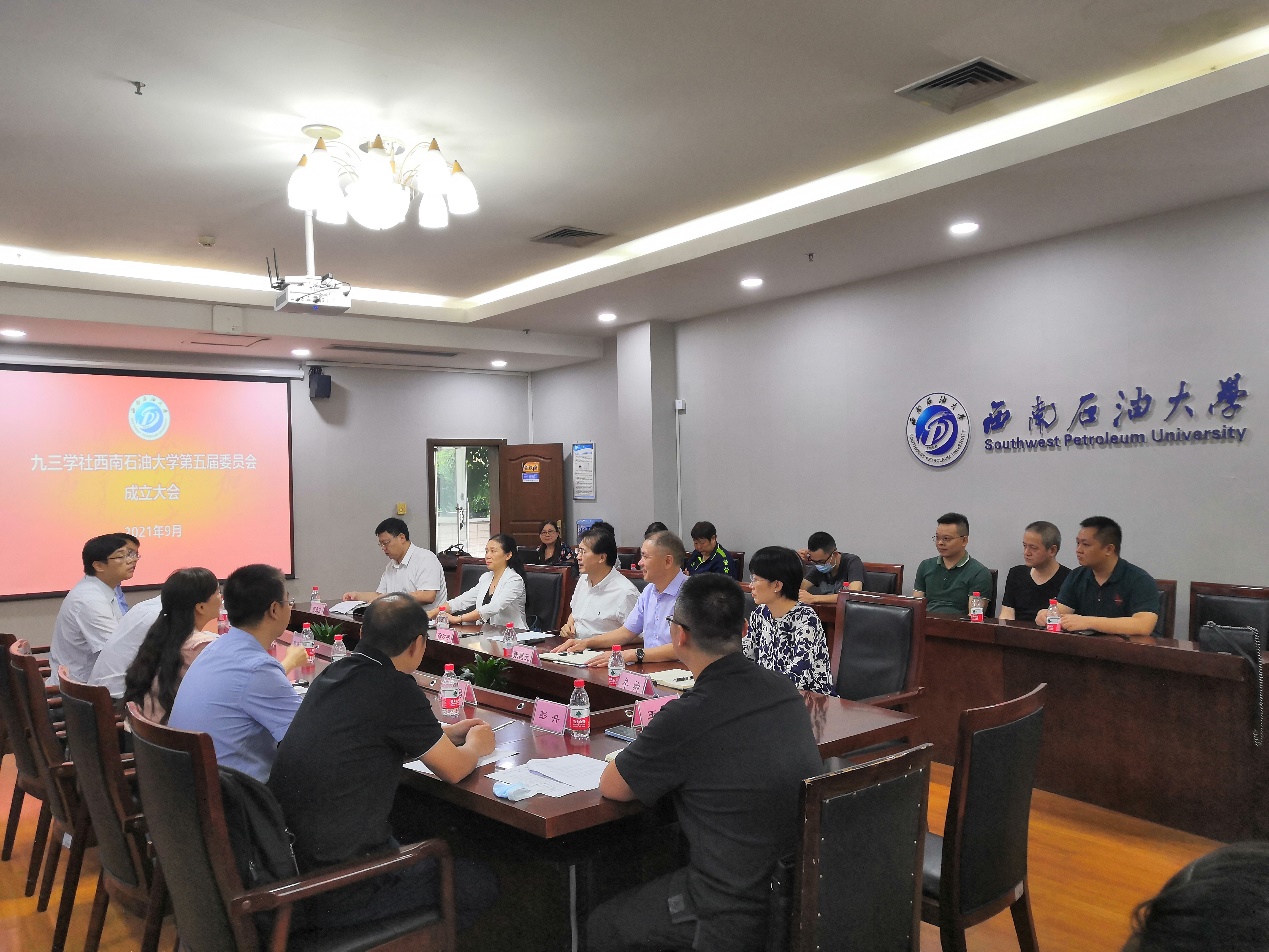 校黨委統(tǒng)戰(zhàn)部副部長牟卿、九三學社成都市委有關同志、九三學社西南石油大學委員會全體社員、學校統(tǒng)戰(zhàn)部相關人員等參加了本次換屆大會。