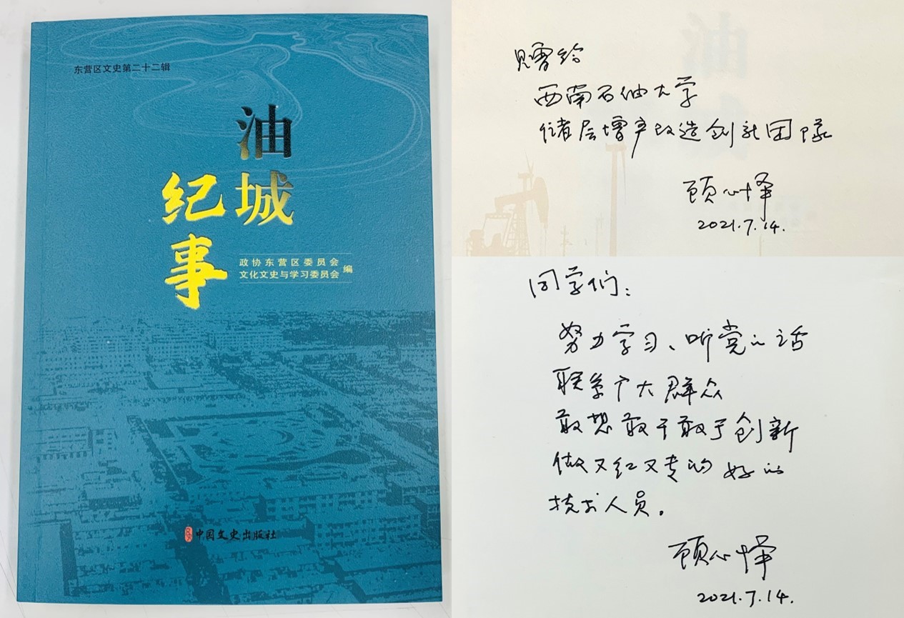 “同學們,努力學習,聽黨的話,聯系廣大群眾,敢想敢干敢于創(chuàng)新,做又紅又專的好的技術人員。”在勝利油田,中國工程院院士顧心懌在贈與實踐隊的《油城紀事》這本書的封面寫下了這么一段寄語。實踐隊成員王錦內心久久不能平靜,被老一輩石油人愛黨愛國愛崗的情懷深深感染,也更加堅定了興油報國的理想信念。