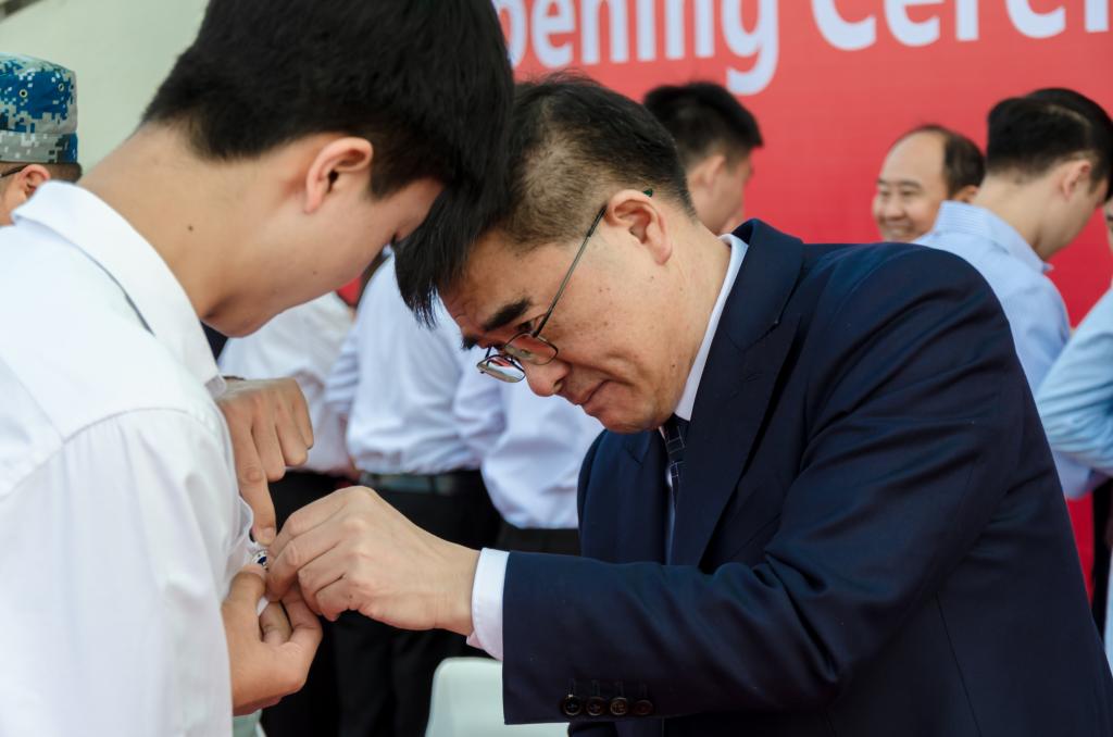 趙金洲為新生代表佩戴校徽