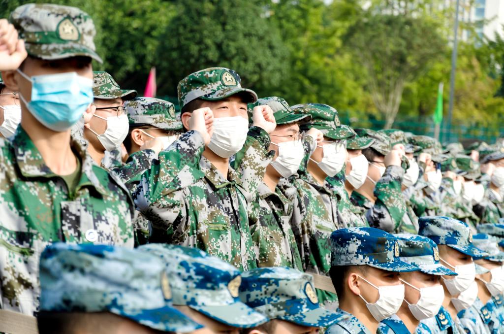校黨委副書記、紀委書記郭世一,校黨委常委、副校長張烈輝,新都區人民武裝部中校副部長唐靜宇,承訓部隊中校副參謀長曹超華,以及各學院院長,學工部、武裝部、教務處、研究生院負責人,各學院分管學生工作負責人,教師代表,高年級學生代表,全體軍訓教官,新生輔導員,2021級全體新生參加了本次典禮。(圖 大學生全媒體中心 邱子懿 方嘉俊 許佳豪 李偉杰 石壯志)