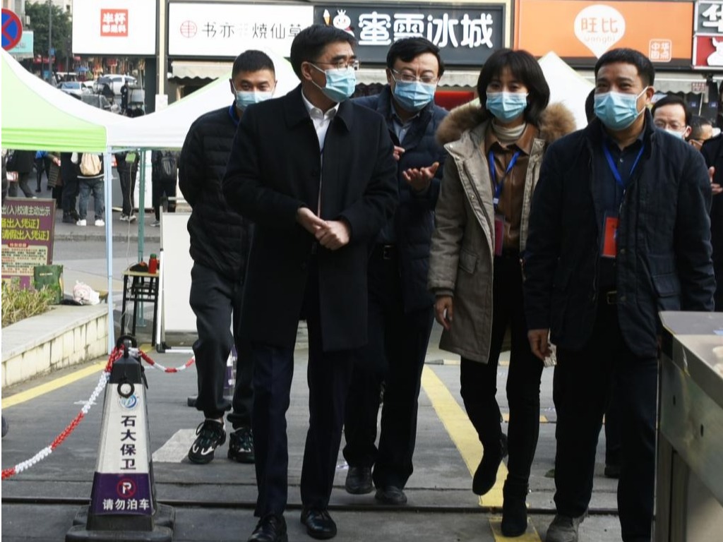 12月24日下午,校長趙金洲,校黨委常委、副校長郭建春帶隊檢查了我校2022年研究生招生考試疫情防控和考試組織工作,要求各工作組要加強風險意識、責任意識,從嚴從緊抓好研招考試疫情防控措施落細落實,科學、及時應對考試期間出現的突發情況,有條不紊推進各項準備工作,堅決筑牢校園疫情防線和安全底線,切實守衛廣大考生生命健康安全,確保實現“應考盡考”“平安研考”的目標。
