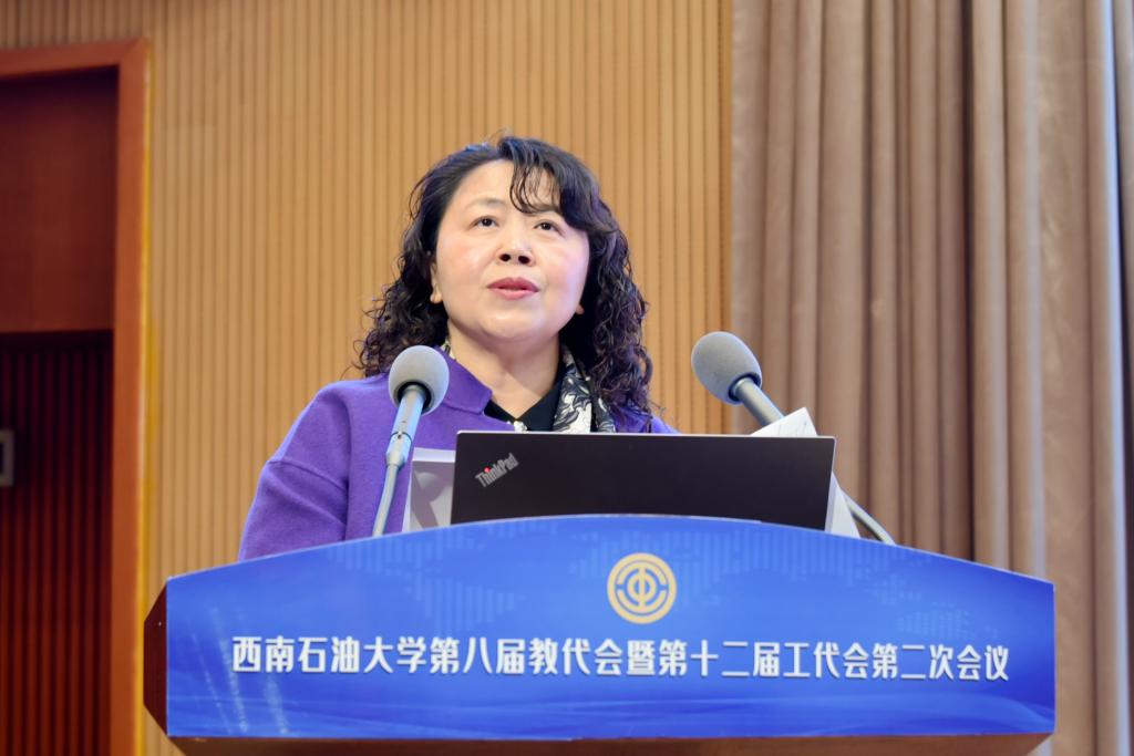 會上,財務(wù)處處長何濤作了《學(xué)校財務(wù)工作報告》。與會代表還對《西南石油大學(xué)“十四五”事業(yè)發(fā)展規(guī)劃和2035遠(yuǎn)景目標(biāo)綱要》 《中共西南石油大學(xué)委員會關(guān)于新一輪全面深化改革提高人才培養(yǎng)質(zhì)量的決定》 《學(xué)校第二輪“雙一流”建設(shè)高校整體建設(shè)方案》,以及《學(xué)校教代會提案工作報告》進(jìn)行了書面審議。(圖/大學(xué)生全媒體中心 劉強(qiáng))
