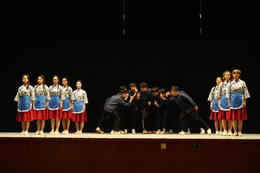 “劉大娘地里種南瓜,牛大梁田里種蘭花,劉大娘的南瓜長在柳樹上,牛大梁的蘭花開在籬笆下,南瓜代糧,蘭花綠化……”在藝術學院一年一度的實踐匯報展示中,播音專業大一的同學們正在舞臺上展示原創繞口令作品,說唱、快板、嗩吶輪番上陣,有趣的描述與生動的展現讓在場師生頻頻鼓掌。這些作品,是100多名同學在假期完成的鄉村藝術實踐“作業”。