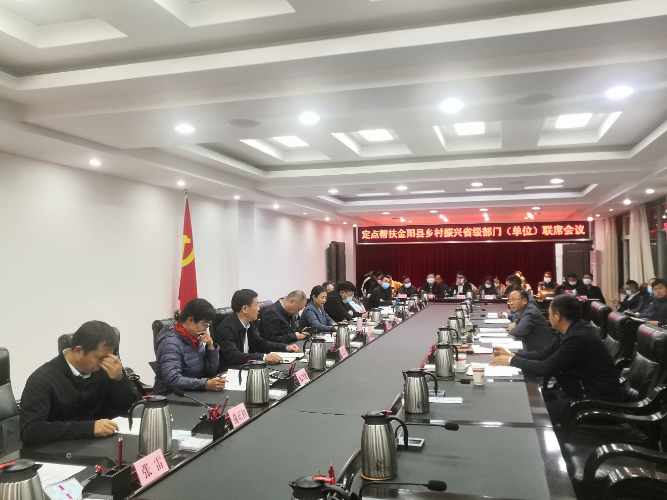 17日晚,“定點幫扶金陽縣鄉(xiāng)村振興省直部門(單位)聯(lián)席會”在金陽縣委會議室召開,會議由省地方金融監(jiān)管局黨組成員、機關黨委書記王巖辭主持,金陽縣委書記方鳳華和縣委副書記、縣長伍果介紹了金陽縣鞏固脫貧攻堅成果及推進鄉(xiāng)村振興有關工作情況,并提出幫扶需求。