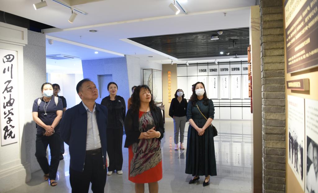 宋銘一行考察了校史館、油氣開發國家級虛擬仿真實驗教學中心、地科院地質展示館、計科院大數據實驗室,聽取了我校相關負責人對科研及文旅實驗室和能源文化研學旅行實踐基地建設工作的匯報。宋銘對學校開展能源文化相關建設工作提出了指導意見。