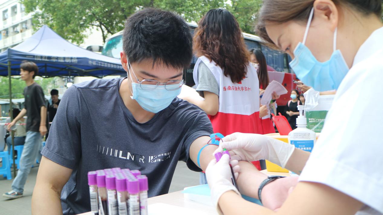 活動由校團委、校醫院、新都區紅十字會、校青志協、校紅十字會學生分會共同組織,這是我校紅十字會學生分會成立以來首次參加組織的獻血活動。血液和造血干細胞血樣分別由成都市血液中心和新都區紅十字會采集。(圖/舒琳 李牧子)