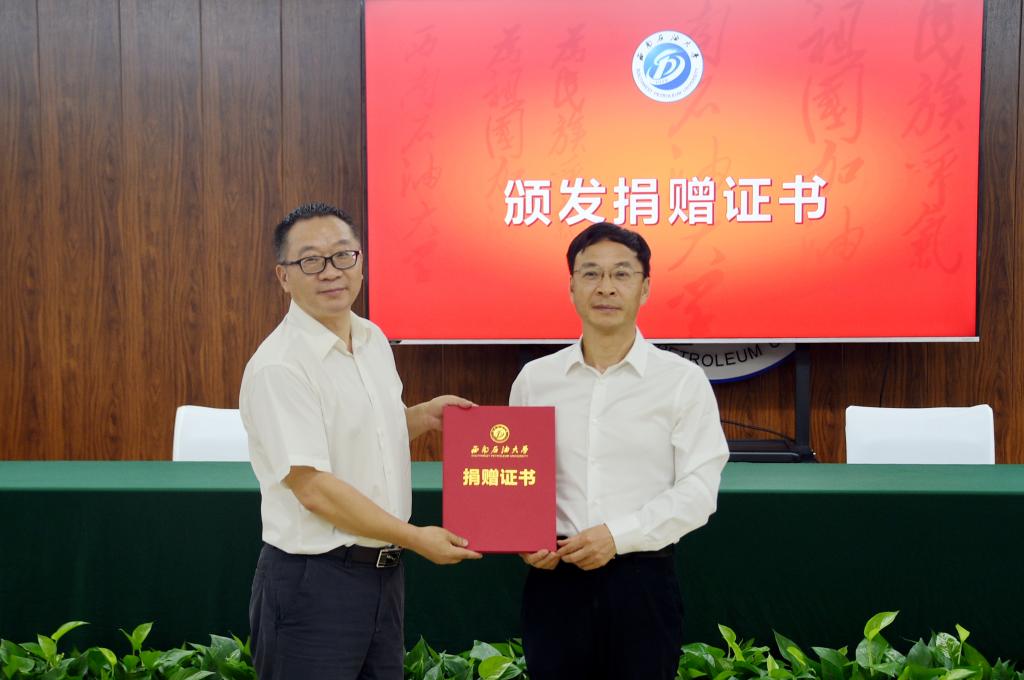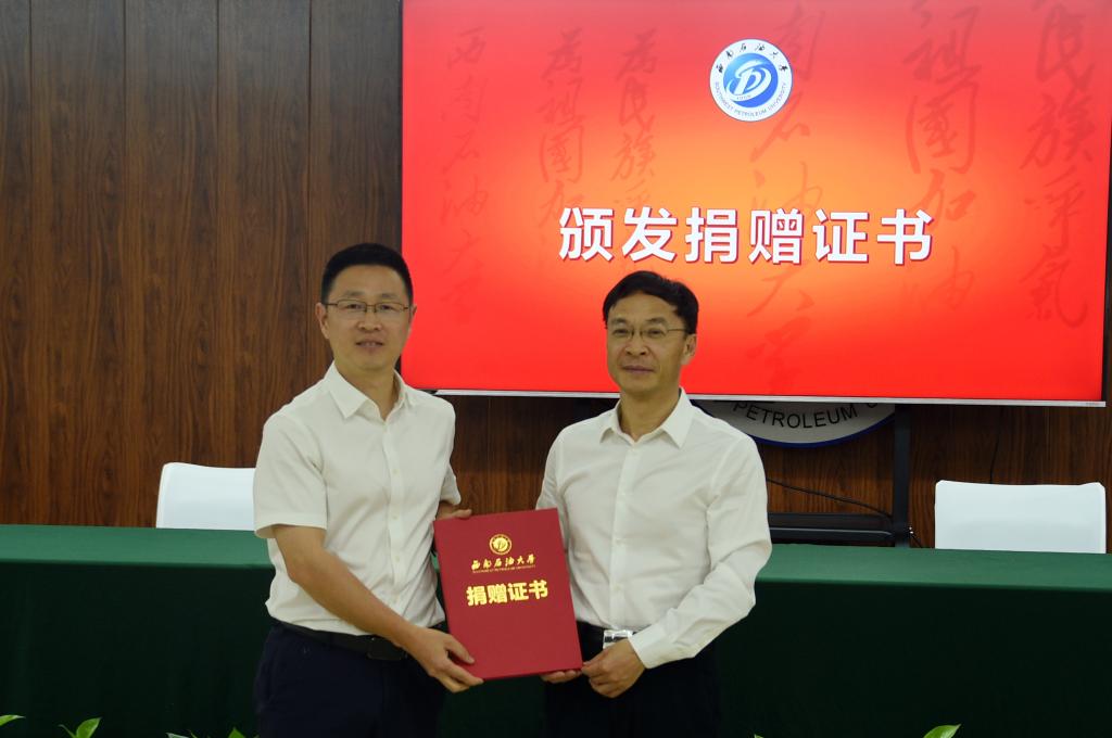 為成都西南石大石油工程技術有限公司頒發捐贈證書