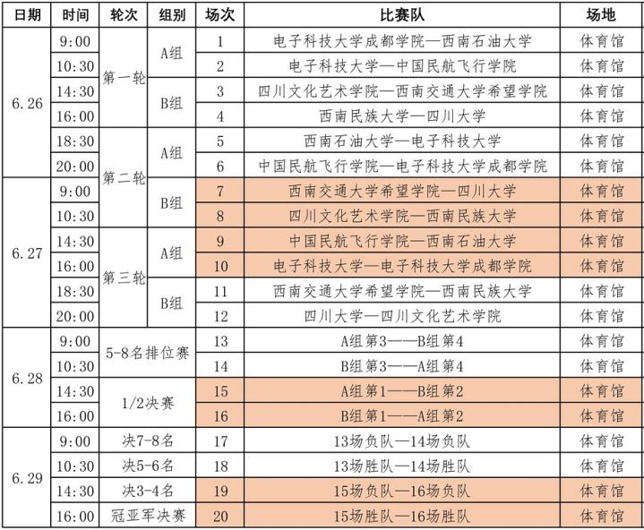 四川省第二屆“貢嘎杯”青少年校園籃球聯賽高校校園組總決賽競賽日程表