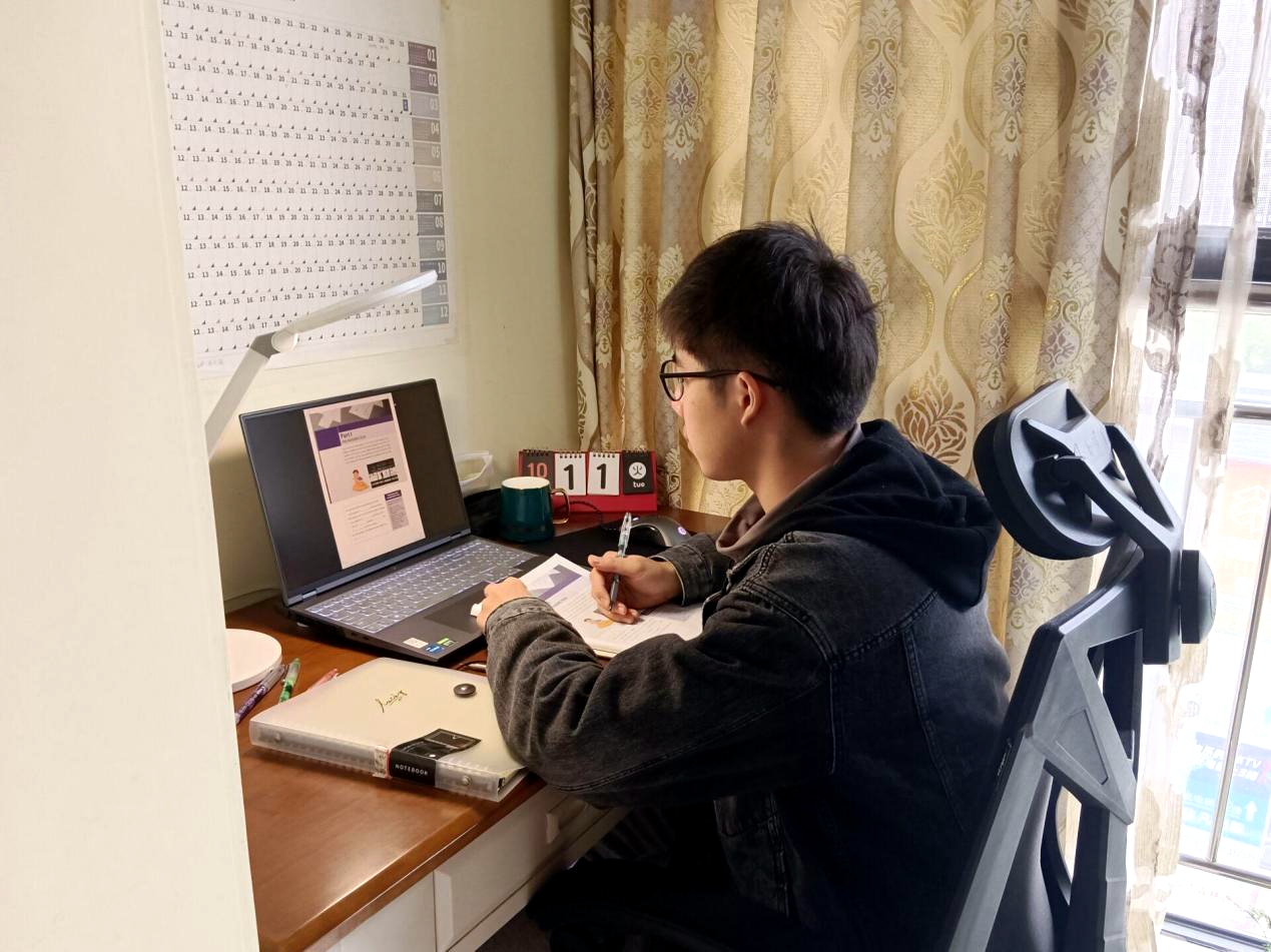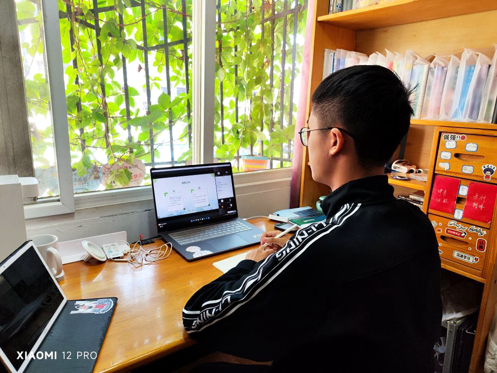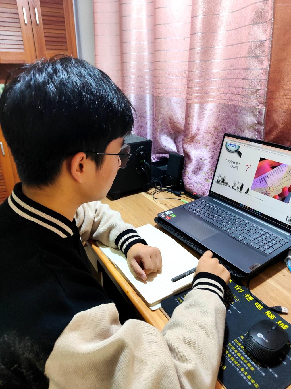 馬克思主義學(xué)院思想政治教育專業(yè)2022級(jí)學(xué)生陳萌浩在家上《法學(xué)概論》課