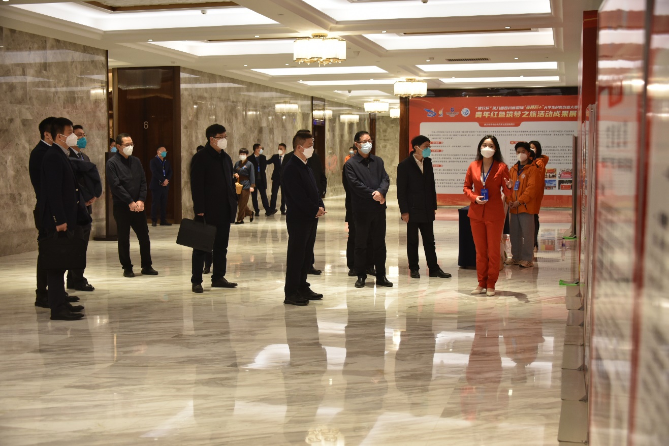 省委教育工委委員、教育廳黨組成員、副廳長(zhǎng)陳朝先,省委統(tǒng)戰(zhàn)部副部長(zhǎng)張榮,省發(fā)展和改革委員會(huì)二級(jí)巡視員陳偉,省經(jīng)濟(jì)和信息化廳總經(jīng)濟(jì)師袁冰,共青團(tuán)四川省委員會(huì)副書(shū)記任世強(qiáng),建設(shè)銀行四川省分行副行長(zhǎng)肖倬,校黨委常委、副校長(zhǎng)劉向君等為獲獎(jiǎng)師生頒獎(jiǎng)。教育廳二級(jí)巡視員楊建國(guó)主持頒獎(jiǎng)典禮。