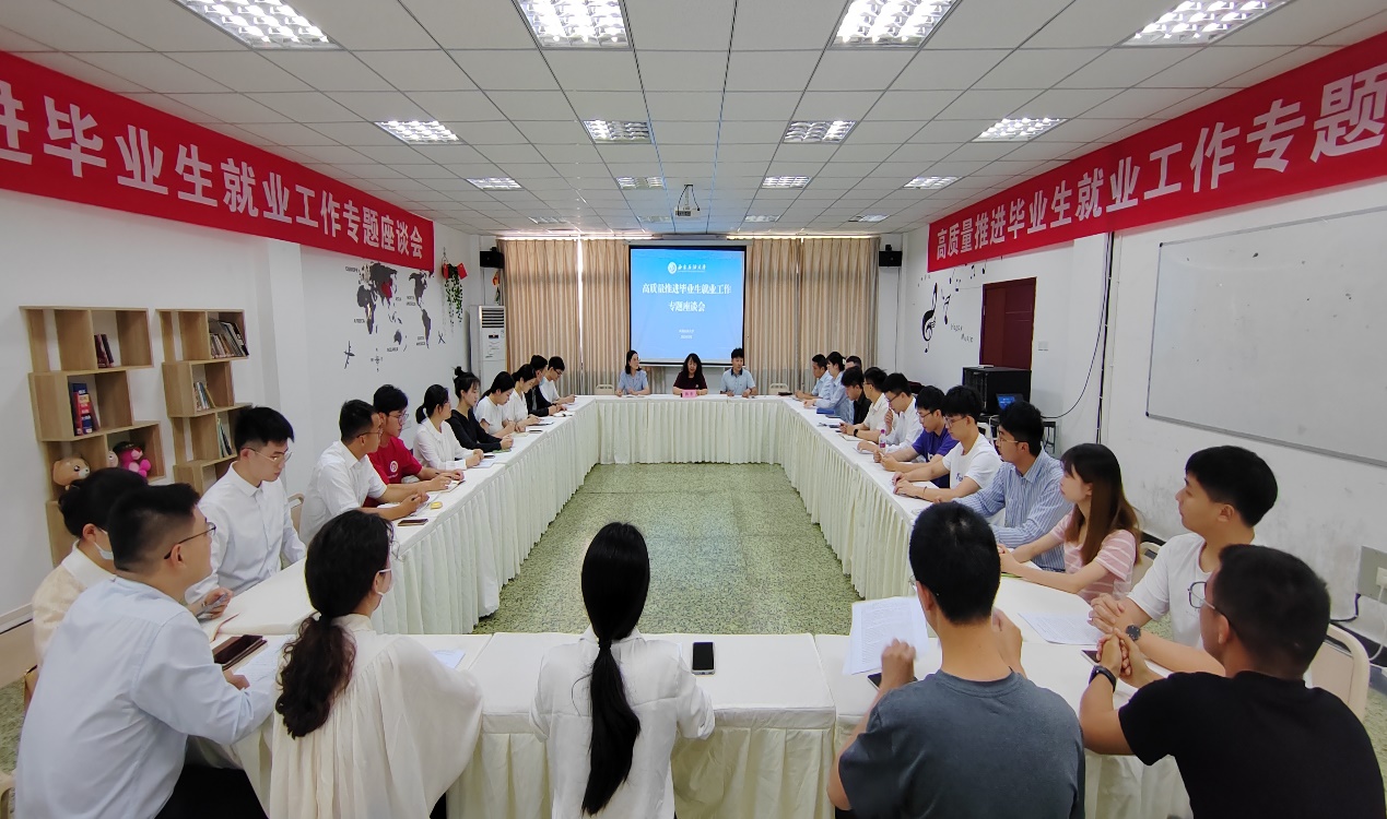 招生就業處相關人員、畢業班輔導員代表、畢業生代表、低年級學生代表參加了座談交流。