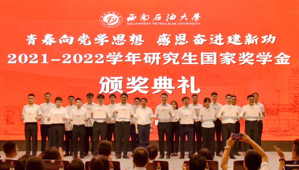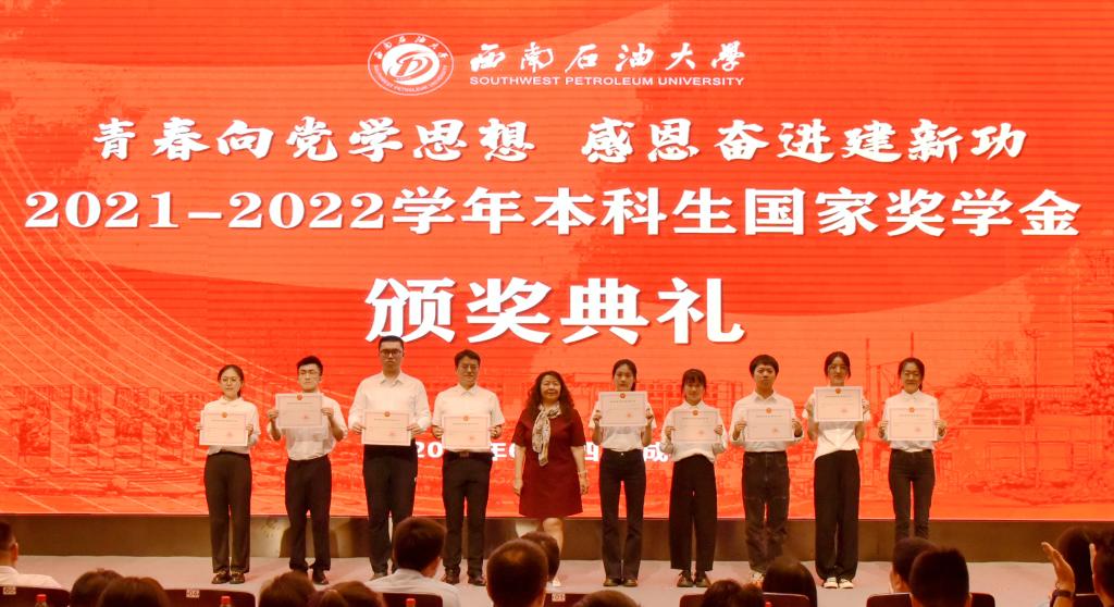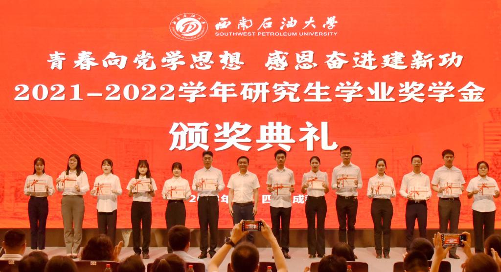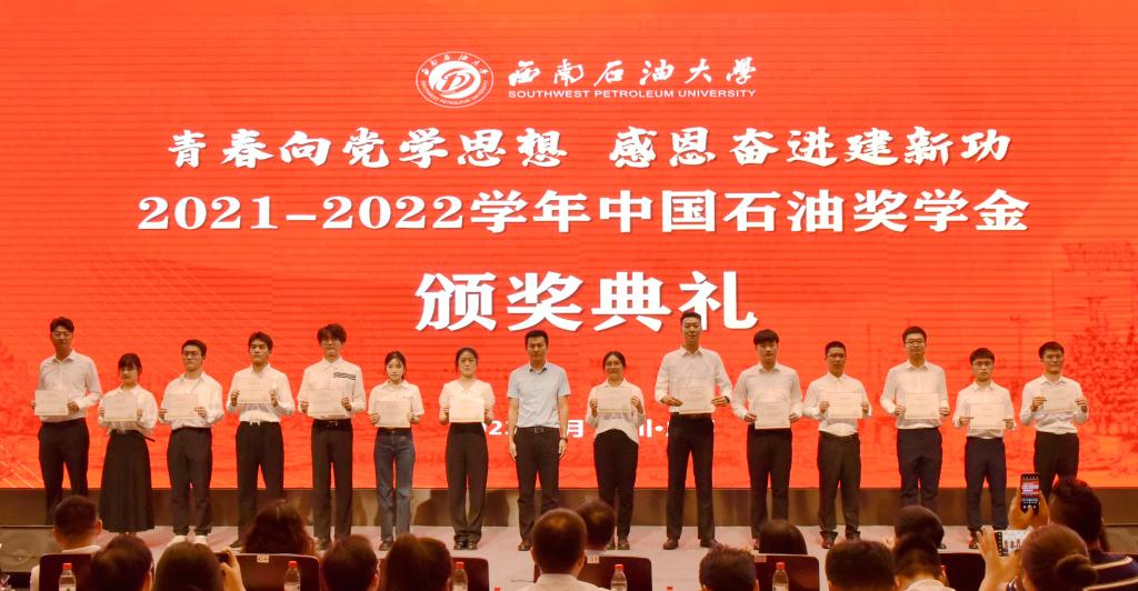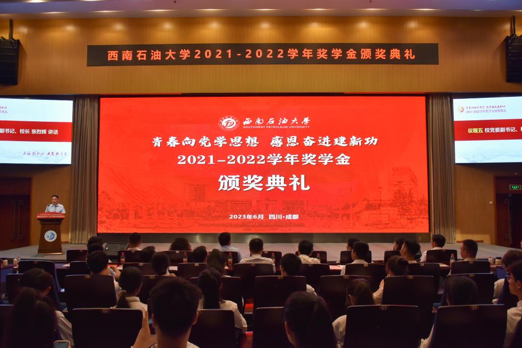 現場舉行了2021-2022學年校長獎學金、本科生國家獎學金、研究生國家獎學金、國家勵志獎學金、研究生學業獎學金、中國石油獎學金、威沃敦化工獎學金、華油能源優秀學生獎學金、晶奇網絡獎學金、杰利陽優秀學生獎學金、明信能源獎學金、成都酷云獎學金共12項政府類、學校自設類及社會捐贈類獎學金的頒獎儀式。本次表彰獎勵的學生共4065人次,獎勵金額達3034.4萬元。