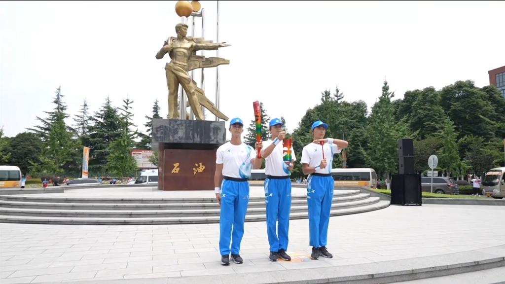 陳永燦邀請火種護衛隊點燃大運會火炬“蓉火”,宣布大運會成都站(西南石油大學)火炬傳遞開始。