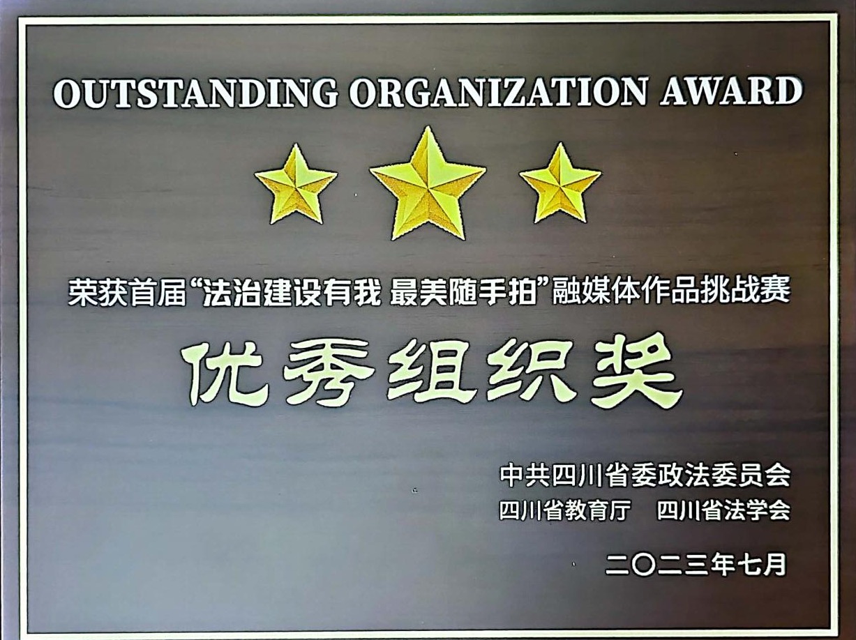 7月19日,由中共四川省委政法委、四川省教育廳、四川省法學(xué)會聯(lián)合舉辦的首屆“法治建設(shè)有我 最美隨手拍”融媒體作品挑戰(zhàn)賽頒獎儀式在成都舉行。活動現(xiàn)場揭曉了此次展播活動的獲獎名單,我校獲評優(yōu)秀組織獎,報送作品獲評優(yōu)秀獎3項(xiàng)。