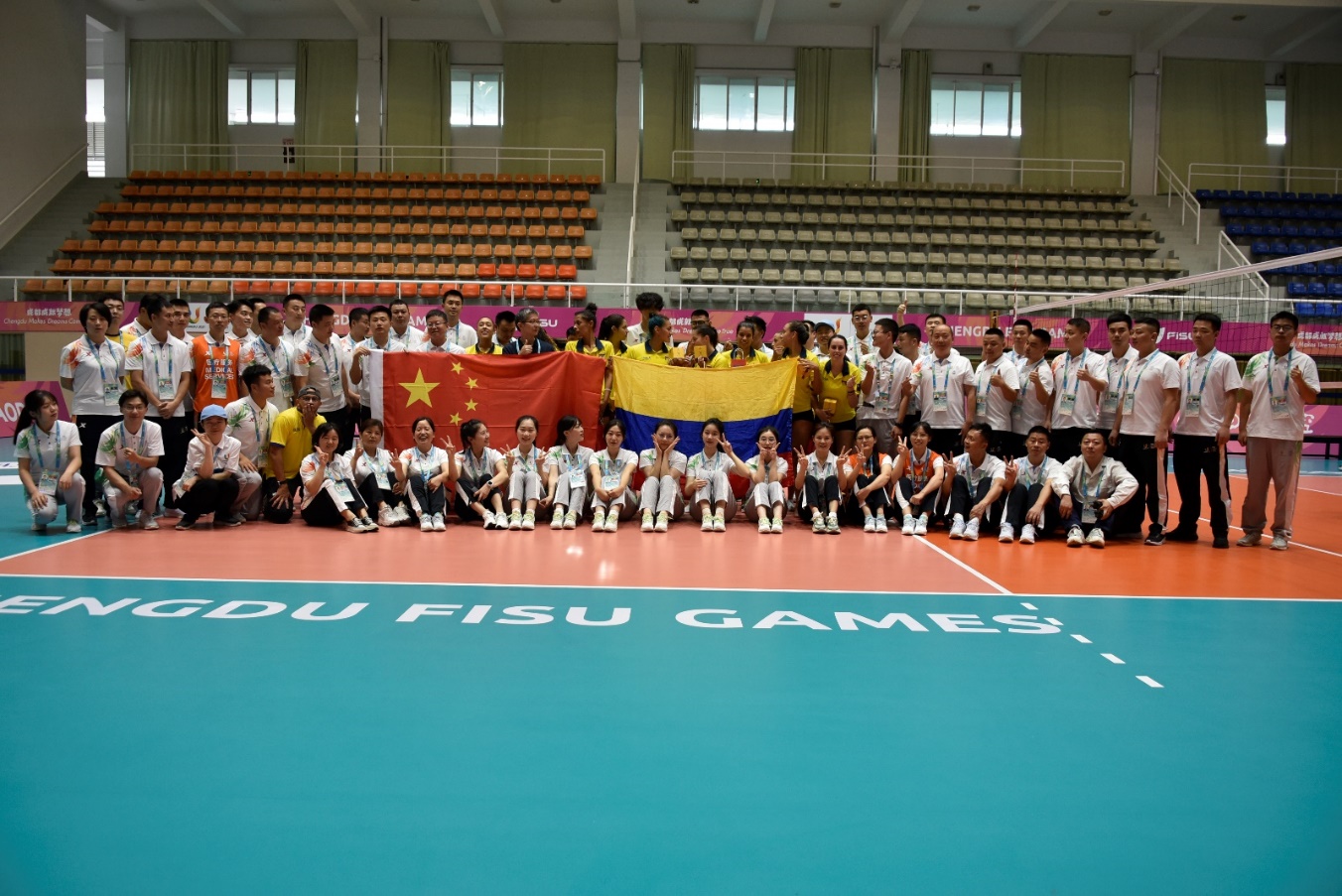 哥倫比亞隊與中方志愿者合影
