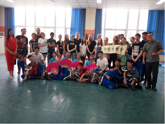 本次交流演出活動的主旨是讓來自俄羅斯的留學生感受到漢語言的魅力所在。演出開場節目為《少年中國說》朗誦,鏗鏘有力的朗誦聲中展現的是藝術院學子“為祖國加油,為民族爭氣”的決心。一首《又唱瀏陽河》唱出了中華文化的源遠流長博大精深,而男生獨唱《黃四姐》則又表現出不一樣的民族韻味,令人回味無窮。繞口令展演趣味非凡,全體交流生上臺互動學習繞口令把現場氣氛推向高潮,充滿了喜悅的笑聲。隨后,氣勢雄壯的蒙古舞《東歸英雄》展現出男生的陽剛英勇,而中國古典舞《秀色》則表現出中國女子的美麗典雅。舞蹈表演結束后,藝術院學子邀請交流生一同學習舞蹈,并在最后進行了成功的展示。互動學習期間,交流生十分投入,現場笑聲掌聲一片,氣氛和諧友好。