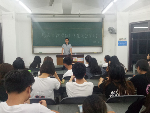 7月4日晚上21:30,藝術學院2016級在思學樓A505召開學期總結暨憲法學習會,輔導員竇雪鋒老師主持召開此次大會。
