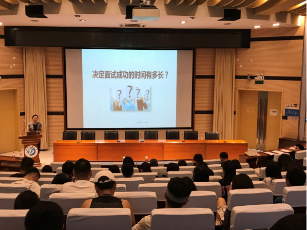 林莉老師以平時的著裝和生活經(jīng)驗生動地為同學(xué)們講解了面試需要的儀容和服裝要求,以幻燈片播放的形式分別為大家闡述了男生和女生在面試過程中著裝、配飾等方面的形象要求和注意事項,具體講解了面試禮儀的站姿、手勢、面部表情、蹲姿、坐姿及走姿等內(nèi)容,使同學(xué)們受益匪淺。