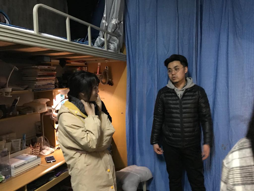 3月3日晚20:00,為確保寢室衛(wèi)生安全、了解同學(xué)假期的生活,并對寢室人員是否歸宿情況進行監(jiān)督,藝術(shù)學(xué)院2018級輔導(dǎo)員李云峰,深入寢室與同學(xué)進行交流。