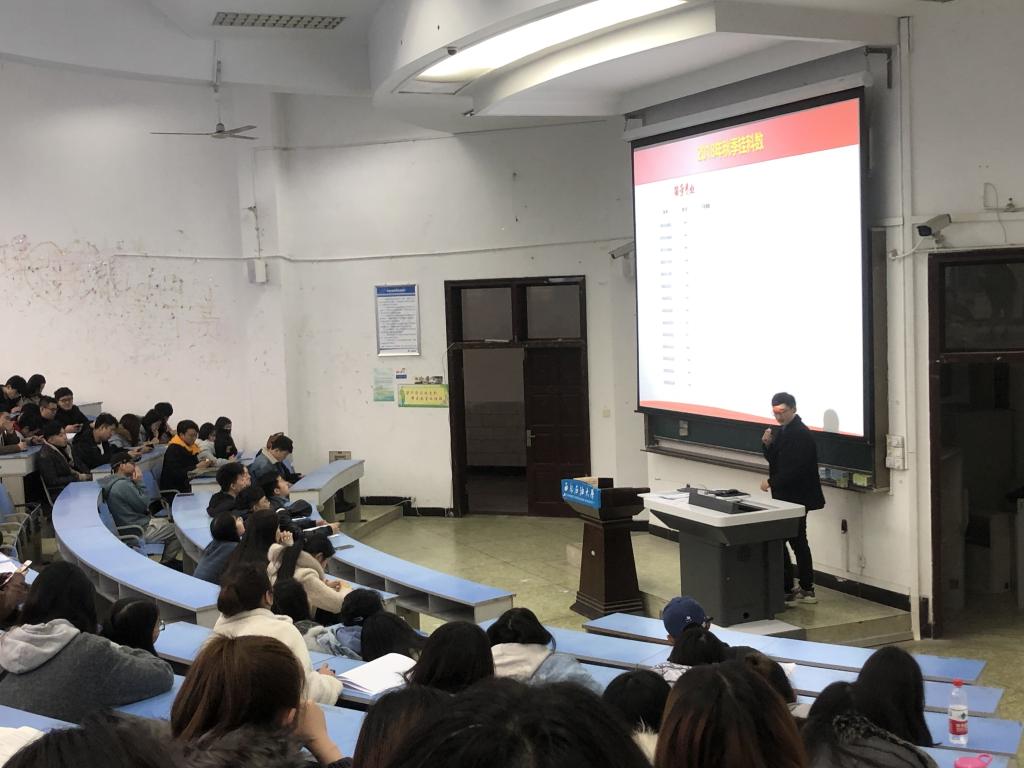 在2016級年級大會上,輔導員陳驊煒就上一學期各專業成績和四六級情況進行了分析總結。提醒同學們應該早做畢業打算,做好自己的職業規劃,對本學期工作重點和近期學生工作事宜進行安排部署,動員同學積極準備考研等相關事宜。