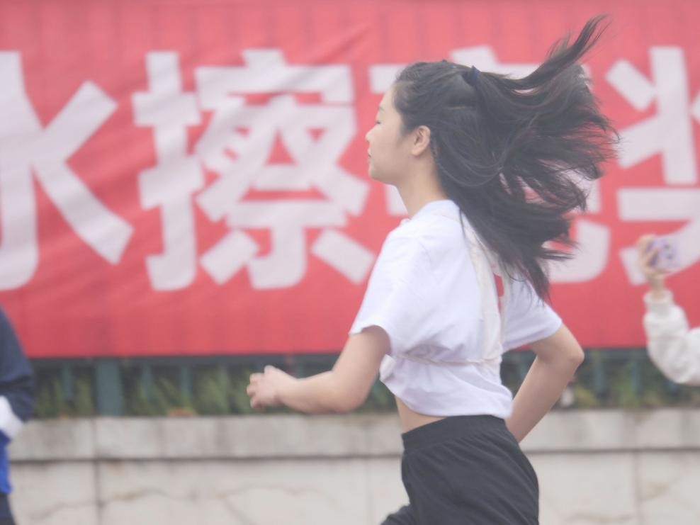 運(yùn)動(dòng)員們各就各位,在熱身階段,藝術(shù)學(xué)院的同學(xué)們?cè)诳磁_(tái)熱情地吶喊著,為參賽者加油助力。槍聲響起,選手們?nèi)珉x弦之箭沖出,身姿舒展,面對(duì)強(qiáng)勁的對(duì)手,她們毫不氣餒拼盡全力沖向終點(diǎn),不斷超越著對(duì)手,也超越著自己。