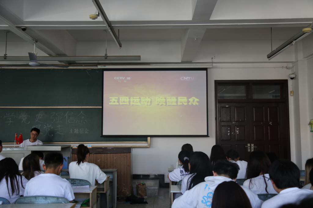 活動開始,孫老師主持全體團員起立唱響團歌,并重溫了入團誓詞。之后進行了黨史學習主題教育,孫老師和同學們就關于黨史學習問題進行了深入交流和探討,提出崇高的道德品質是共產黨員先進性的重要體現,同時也是青年成長成才必須要“扣”好的第一顆“扣子”。隨后,全體學生觀看了《新聞聯播》中習近平總書記到清華大學考察的講話,并共同觀看了專題紀錄片《黨史100講之五四運動》。片中由解放軍后勤學院一級教授邵維正老師通過講述五四運動的發生背景和過程,讓大家深刻認識到了五四青年的愛國壯舉和愛國熱情,對于新時代的青年人有著特殊的意義。活動結尾,大家進行了互動交流。活動結束后,全體同學都被五四青年們英雄事跡所感動,寫下了自己的感想與感悟。