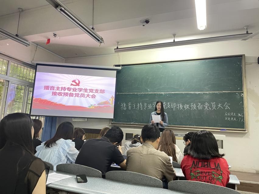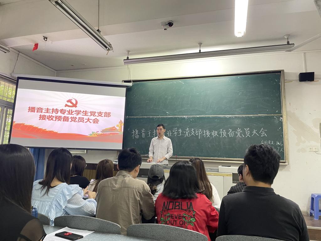 2021年5月28日星期五上午8:30,藝術學院播音主持專業學生黨支部在博學樓B101室召開了預備黨員接收大會。