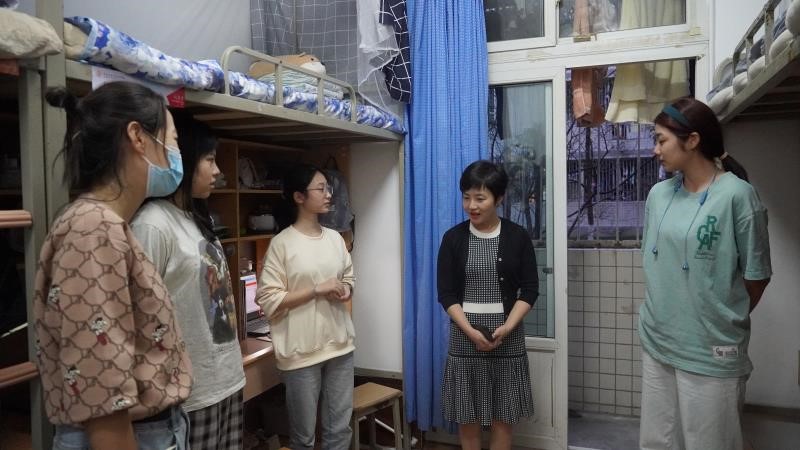 何姍書記在走訪中表達了對新生們到來的歡迎,并且鼓勵同學們在新環境下盡快適應新的身份,融入到新的生活,建立起新的友誼。鼓勵同學們在集體生活中團結友愛,互相幫助,相互關心,積極參與學院活動,抓住機會去展示自己的才能。面對疫情防控,高雨蒙老師還叮囑同學們多開窗通風,出門佩戴好口罩,做好疫情防護,提高安全防范意識。