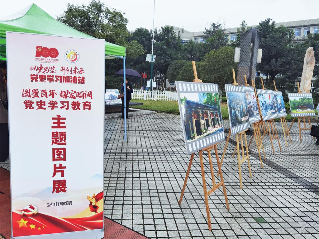 回望黨史路,重溫革命情。為進一步響應黨中央對黨史學習教育的部署安排,貫通學習領悟習近平總書記的四次考察重要講話精神,10月21日,西南石油大學在博學廣場組織開展“以史為鑒,開創未來”黨史學習加油站主題活動,藝術學院積極籌備參與,舉辦了題為“圖鑒百年,輝宏瞬間”的黨史學習教育主題圖片展。