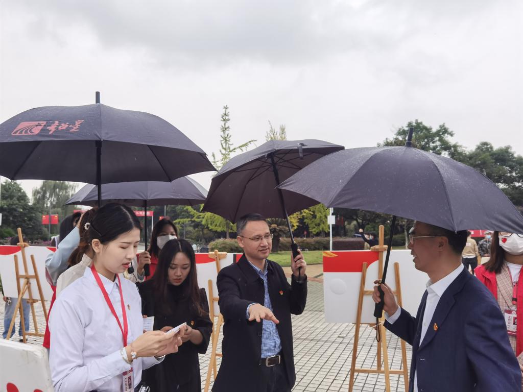 省紀委監委駐校紀檢監察組組長、校黨委副書記、紀委書記郭世一和黨委宣傳部部長易聯樹也蒞臨現場參觀。郭書記表示,“這樣的沉浸式、體驗式黨史學習方式,對學生來說獲得感和滿足感很強。”希望青年學子在體驗學習中堅定理想信念,深學細悟黨史,感悟牢記中國共產黨人初心使命,從黨的百年偉大奮斗歷程中汲取繼續前進的智慧和力量,練就過硬本領,爭做“有志氣、有骨氣、有底氣”的時代新人。