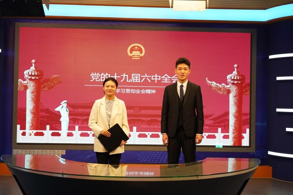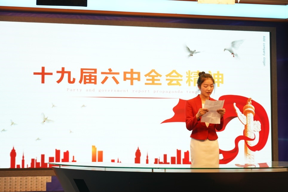 來自播音、表演、編導專業的多名同學主動上臺宣講了全會的部分會議內容,并介紹了全會最重要的成果《中共中央關于黨的百年奮斗重大成就和歷史經驗的決議》。