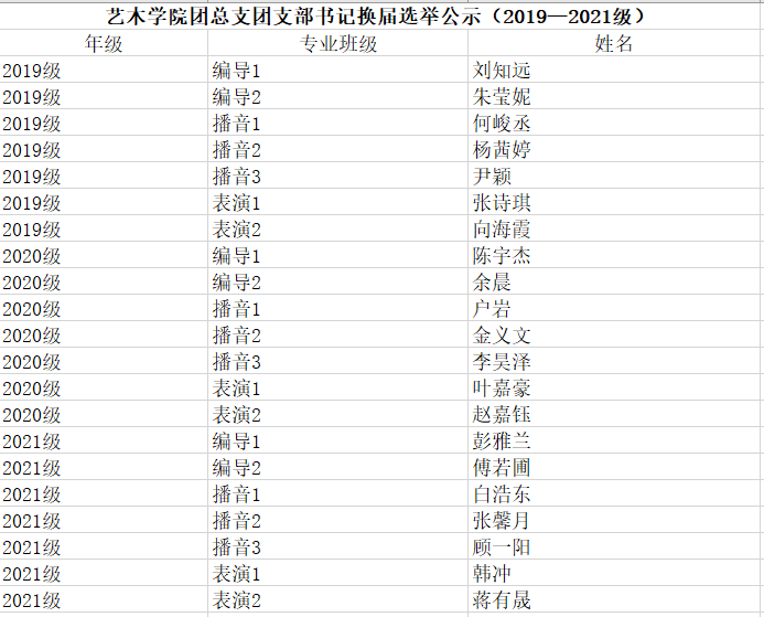 藝木學院團總支團支部書記換屆選舉公示(2019—2021級)
