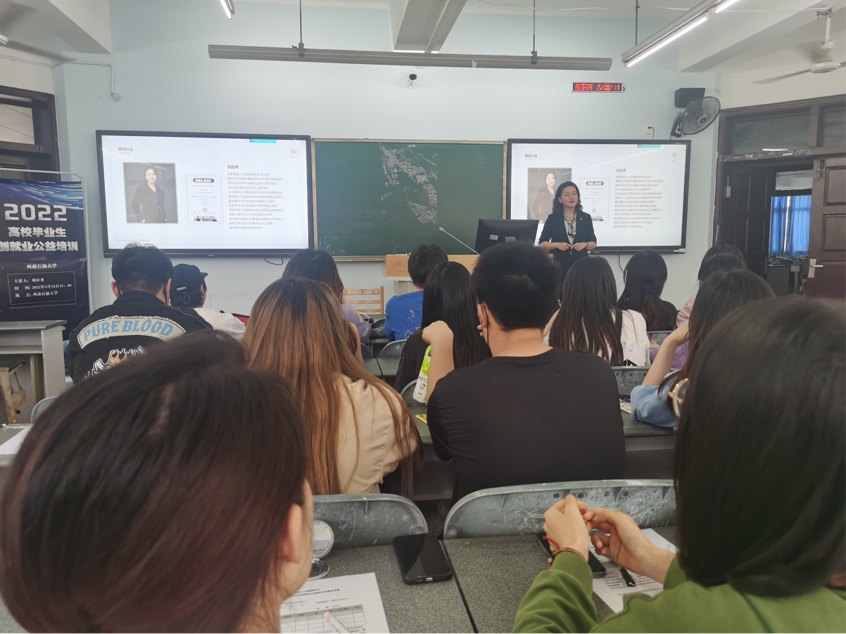 5月12日下午,在思學樓c406開展成都市人才服務中心“2022高校畢業生創就業公益培訓講座”,本次講座邀請到國家高級人力資源管理師劉應秀,為同學們針對創業、就業方面的相關知識進行培訓。