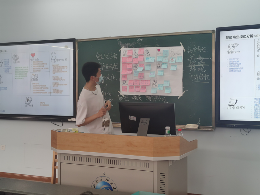 劉老師首先將同學們分成五個小組,以她豐富的指導經驗,分別從創業考慮的因素、構想創業項目、團隊創業項目內容簡述、商業模式、等方面,圍繞創業者在創業過程中的不同階段所遇到的實際問題進?了解答。在此期間,劉老師用“先討論后分享”的方法,提高了同學們的思考能力,并與同學們積極互動,不僅有效解決了?家?中的疑惑,也為同學們的創業指明了?向。同學們在劉老師幽默的演講方式、細心的解答和活躍的演講氛圍中也表現出了較高的主動性。