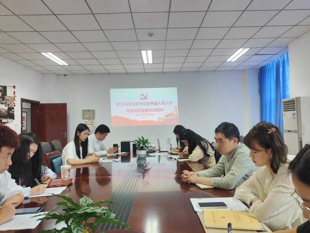 為做好學(xué)生黨員教育管理工作,持續(xù)推進(jìn)黨員思想政治教育,藝術(shù)學(xué)院播音主持專(zhuān)業(yè)學(xué)生黨支部組織于2022年5月31日學(xué)習(xí)習(xí)近平總書(shū)記在中國(guó)人民大學(xué)考察時(shí)的重要講話精神。本次會(huì)議由播音學(xué)生黨支部書(shū)記孫曉光主持。