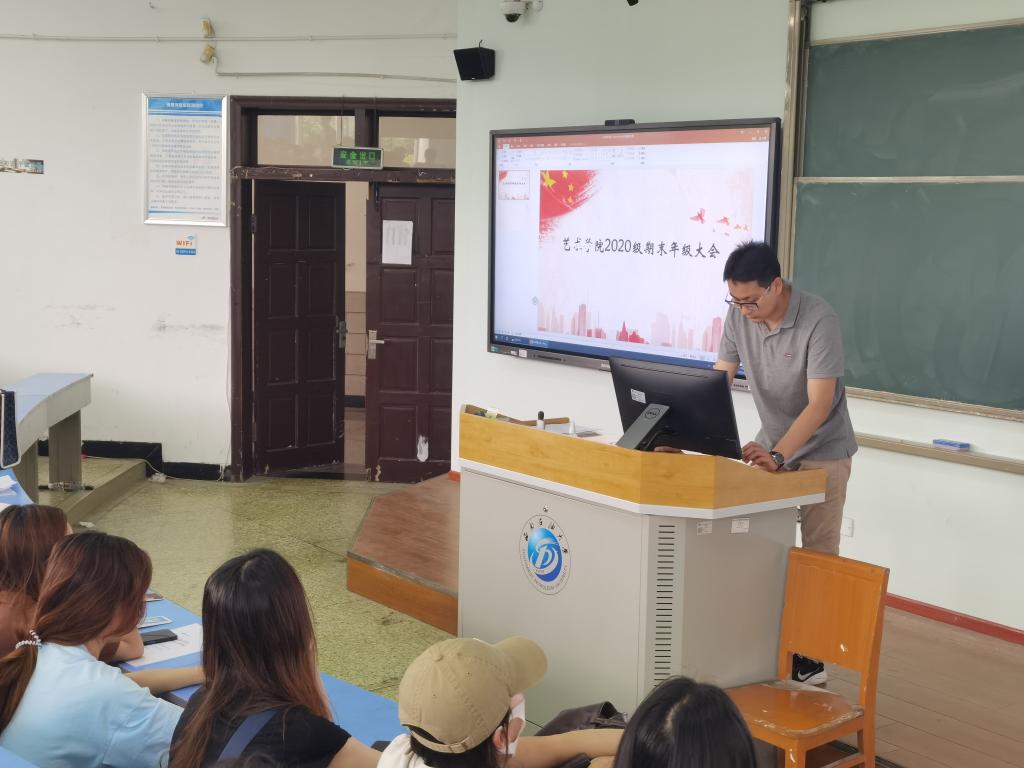 暑假臨近,為保障同學們的離校安全,安排好假期前最后一段時間,為大二生活劃上圓滿句號,6月9日下午,藝術院2020級輔導員曹大偉在思學樓A220給同學們召開期末年級大會。