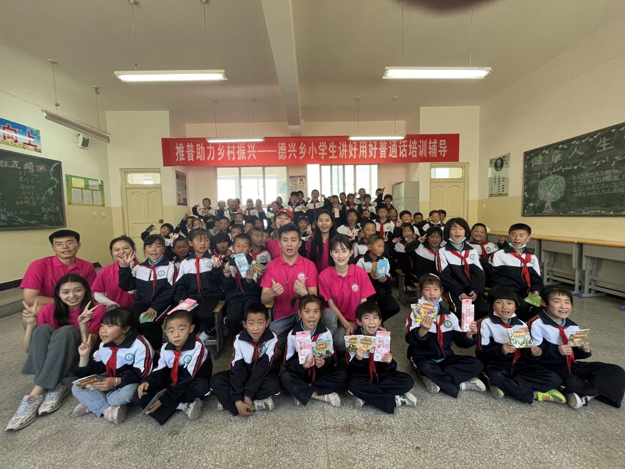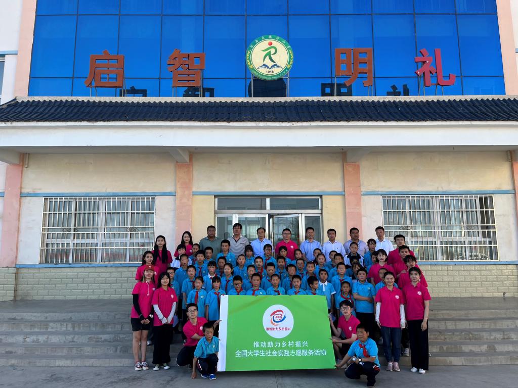 圖為實踐隊成員、指導老師與當地德興學校對接組合影留念