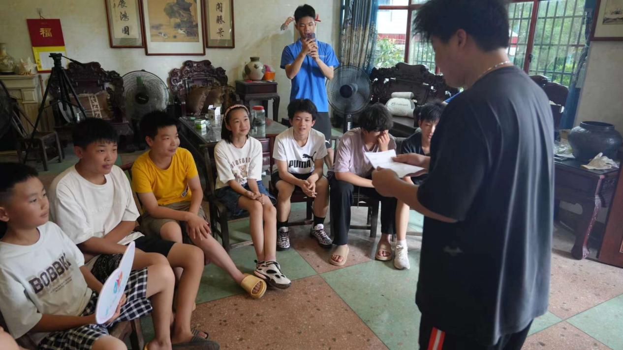 實(shí)踐隊(duì)立足當(dāng)?shù)靥厣蛯?shí)際,精心籌備和設(shè)計(jì)普通話趣味練習(xí)與方言挑戰(zhàn)環(huán)節(jié),利用方言文化資源,讓教學(xué)互補(bǔ)生動(dòng),減輕孩子們的學(xué)習(xí)抵觸,促進(jìn)語言融合與文化傳承。大家將孩子們分為兩隊(duì),以積分制的形式進(jìn)行語言競賽,激發(fā)學(xué)生的競爭意識(shí),以普通話版繞口令和方言版繞口令的教學(xué)方式鍛煉學(xué)生的口語表達(dá)能力,讓他們更熟練地掌握語言。最后,成員們通過看圖猜成語的游戲方式,增強(qiáng)教學(xué)趣味性,提升學(xué)生的思維能力。