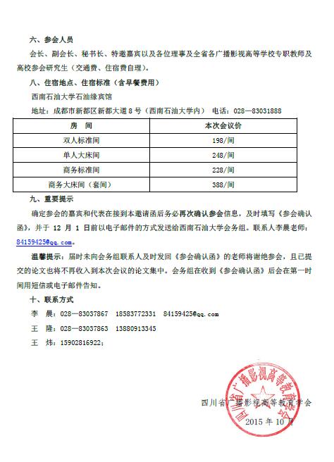2015年四川省廣播影視高等教育學(xué)會(huì)學(xué)術(shù)年會(huì)參會(huì)邀請(qǐng)函