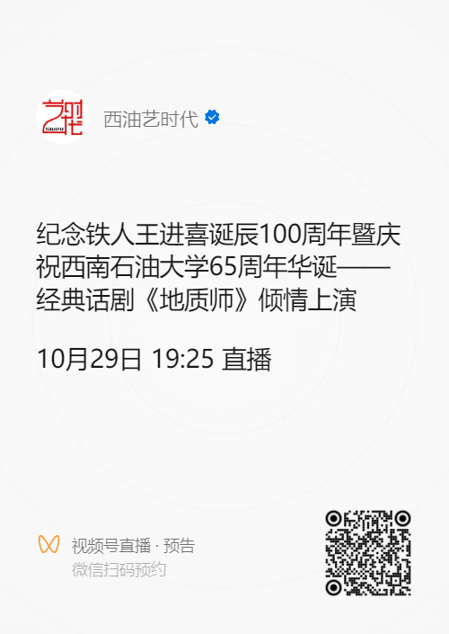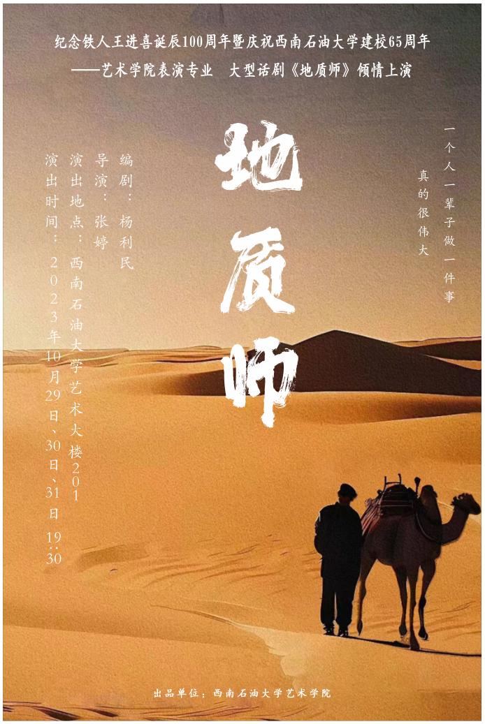 預(yù)告|紀(jì)念鐵人王進(jìn)喜誕辰100周年暨慶祝西南石油大學(xué)建校65周年——藝術(shù)學(xué)院表演專業(yè) 大型話劇《地質(zhì)師》成都校區(qū)展演!