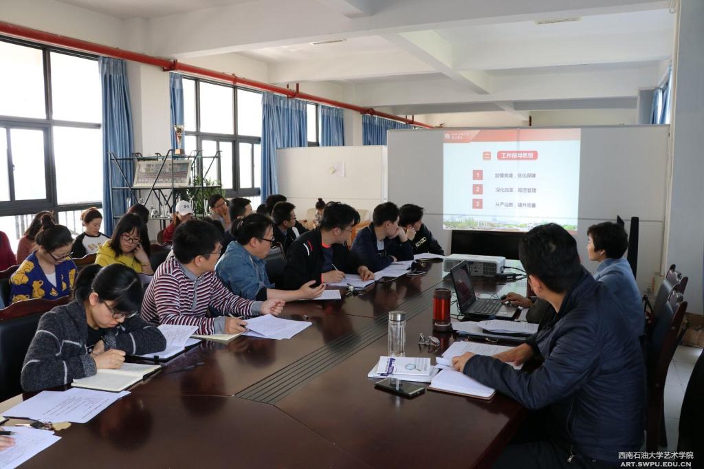 3月22日下午,學院在藝術大樓206會議室召開年度主要工作安排暨本科教學評估迎評動員會。會議由藝術學院黨總支書記殷沖主持,院長焦道利、黨總支副書記何姍及全院教職工參加會議。