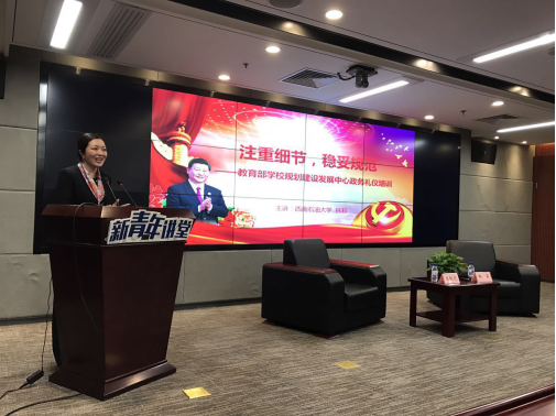 教育部學校規劃建設發展中心是教育部直屬事業單位,以為全國學校規劃建設發展提供服務為宗旨,業務覆蓋全國教育規劃、教育行業投資、學校建設規劃和項目投資等。此次邀請林莉副院長做客新青年講堂,目的是為了規范中心員工政務禮儀,提升中心員工精神風貌。