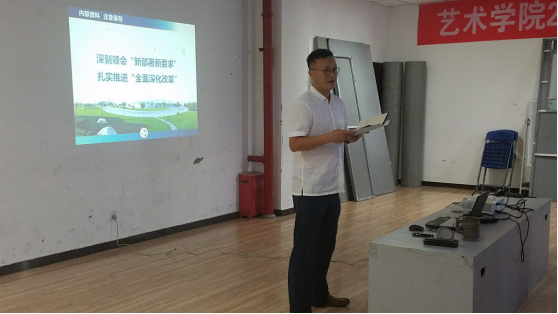 會上,李書記首先對今年新進的教師表示熱烈的歡迎,然后介紹了本年度的藝術(shù)學(xué)院招生錄取工作情況,我院三個專業(yè)在四川、重慶、河南、黑龍江、湖南五省招生情況良好。李書記傳達了學(xué)校新學(xué)期工作精神,指出了學(xué)院老師應(yīng)摸清自己的短板,注重個人職業(yè)規(guī)劃,與學(xué)院規(guī)劃、學(xué)校發(fā)展融為一體,認真學(xué)習(xí)、認真研究、認真行動,化壓力為動力,促進高水平特色大學(xué)的建設(shè)。