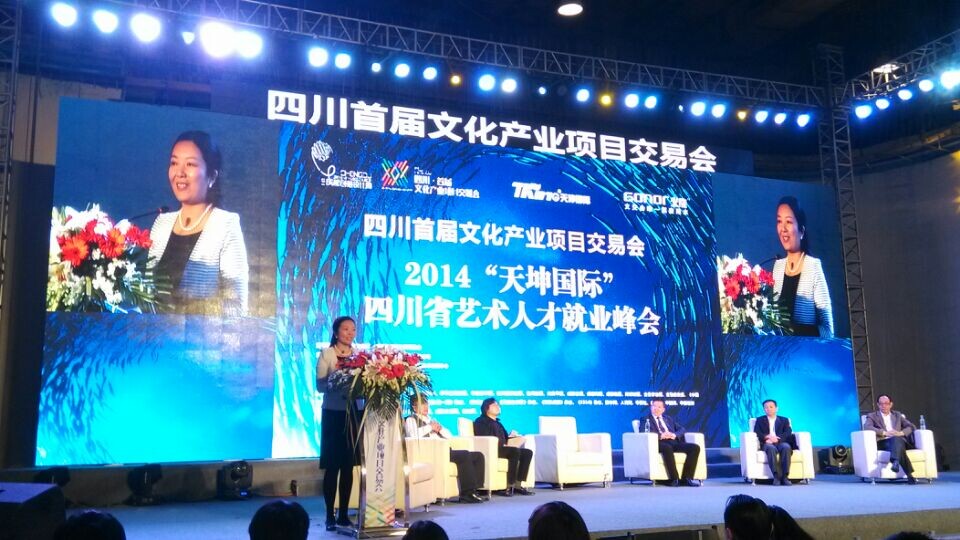 四川首屆文化產業項目交易會于2014年10月10日-12日在峨影1958電影主題公園隆重舉行,該會由四川省文化廳、成都創意設計周組委會指導,14家四川各地區商會和企事業單位共同主辦。西南石油大學藝術學院副院長林莉受邀參加,并在10月12日召開的2014“天坤國際”四川省藝術人才就業峰會上擔任嘉賓發表講話,藝術學院團總支書記何姍、畢業班輔導員李昆成隨行參加了會議。峰會上,企業代表與藝術高校代表共同探討了當前藝術文化發展大環境及后續人才需求及培養情況。“天坤國際”控股集團董事長兼總裁王云雷談到,公司將搭建人才分類推薦的國際視野大平臺,讓人才與單位之間形成適應新形勢下發展需求的OTO模式;成都企業文化商會會長王開昕表示將整合四川地區三千家優質文化企業,尋求校企合作機遇,給川內人才就業牽線搭橋,特別是藝術文化類人才。隨后,川內藝術類院校代表各嘉賓就各院校近年來在藝術人才培養、實習實訓、就業等方面的情況進行了主題發言,并給藝術類在校大學生學習提供了可資借鑒的經驗。林莉副院長以西南石油大學藝術學院首屆畢業生為例,介紹了西南石油大學藝術學院“重文化、重基礎、重創新”的人才培養理念,強調在全媒體時代,不僅應培養學生的藝術專業專長,還應注重學生的文化素質和綜合實踐能力培養,力爭使學生專業成才、精神成人。林院長在會上還呼吁各文化企業應當把人才招聘注意力放到川內,拿出魄力留住川內高校藝術人才。