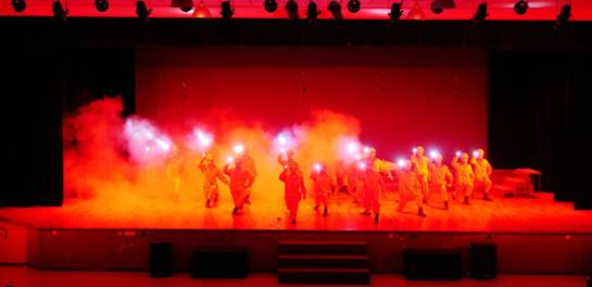 該劇從構思到創作完成歷時六個月,劇本前后優化十余次。本次創作既是對表演專業師生自身專業水平的檢驗,也是對我校大學精神和校史校訓的深刻體悟。為了讓學生深刻理解本劇的創作背景,更好地理解人物性格。導演組專門組織全體演員到工程訓練中心采風實習,走訪石油單位了解行業背景。從最早接觸劇本到本次演出,一共花了兩個多月的時間,其中對校史進行系統深入學習探討就花了半個月時間。參演師生從國慶開始,整整一個月沒有享受過節假日,在有限的條件下,以飽滿的熱情和使命感完成了排演工作。