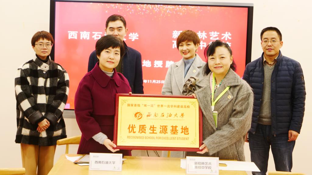 11月26—27日,藝術學院招生調研組先后赴成都新格林藝術高級中學校、重慶市兼善中學、重慶十八中兩江實驗中學校開展招生走訪調研活動,與3所中學簽署了優質生源基地共建協議,向其授牌“西南石油大學優質生源基地”,并贈送“學生職業規劃與生涯測評系統”,旨在助力高中學生提前做好生涯規劃。此次調研由藝術學院牽頭,學院黨總支副書記何姍、學院副院長江霄分別帶隊前往。
