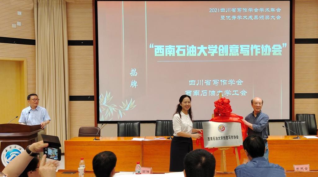 會(huì)上,四川省寫作學(xué)會(huì)與西南石油大學(xué)聯(lián)合建立了“四川省寫作學(xué)會(huì)實(shí)訓(xùn)基地”、“西南石油大學(xué)創(chuàng)意寫作協(xié)會(huì)”,并進(jìn)行了授牌儀式和揭牌儀式。